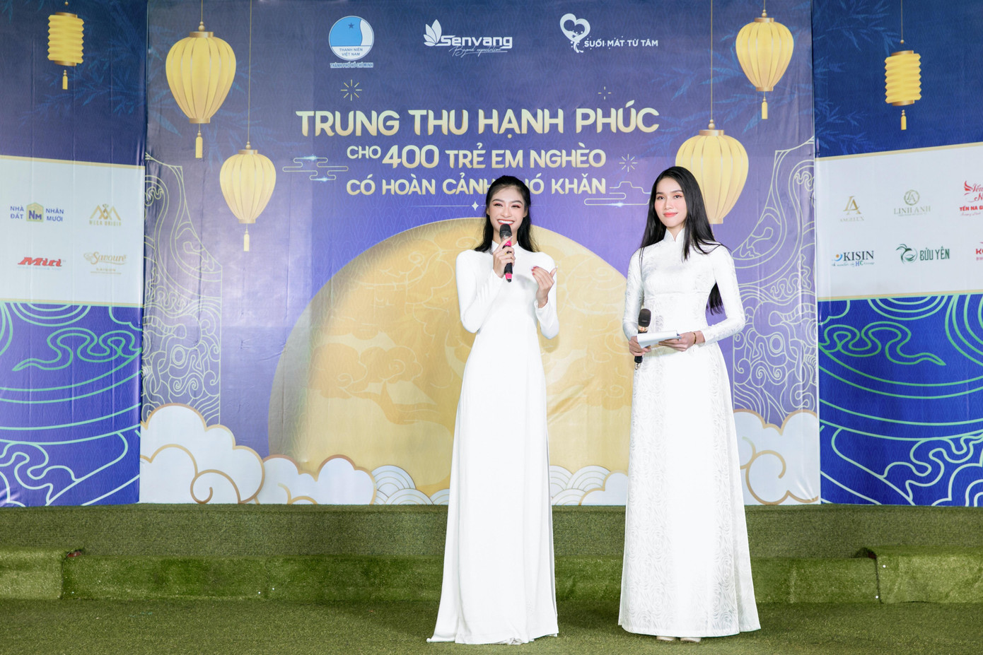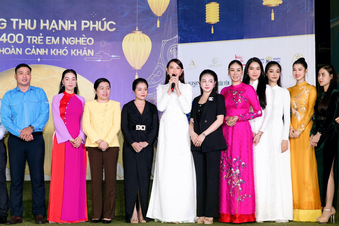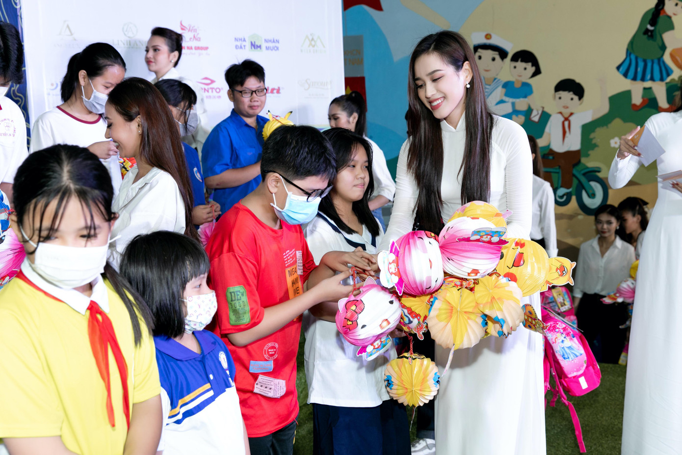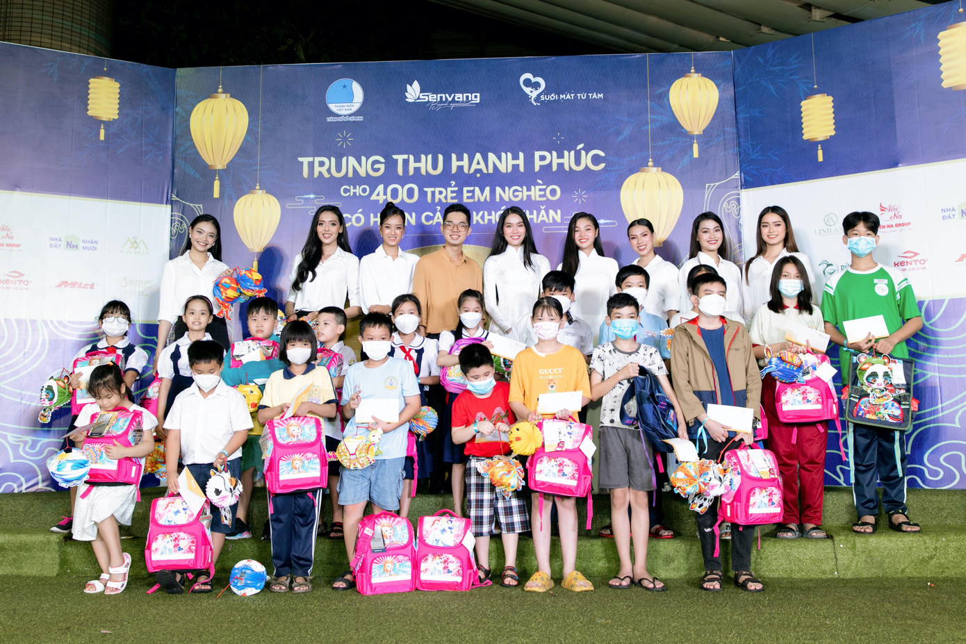 Với tà áo dài mộc mạc, dàn Hoa hậu, Á hậu hàng đầu showbiz Việt vẫn đầy rạng rỡ khi gửi đi những món quà Trung Thu ý nghĩa đến các em nhỏ. Phối hợp cùng Hội Liên hiệp Thanh niên TP. HCM, câu lạc bộ Suối mát từ tâm, dàn 'mỹ nhân' Việt vừa tổ chức chương trình 'Trung Thu hạnh phúc' cho hơn 400 trẻ em có hoàn cảnh khó khăn trên địa bàn thành phố.