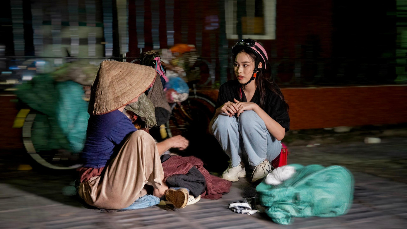 Rũ bỏ hình ảnh lộng lẫy, hào nhoáng trong các sự kiện, Hoa hậu Đỗ Thị Hà chung tay cùng mọi người phát những phần quà để giúp đỡ người nghèo, có hoàn cảnh đáng thương. "Hoa hậu gen Z" cùng ê kíp mang những phần quà giản dị là bánh Trung Thu, bánh kẹo... đến những ông, bà cụ lớn tuổi, những trẻ em không có nhà để về vào đêm khuya.