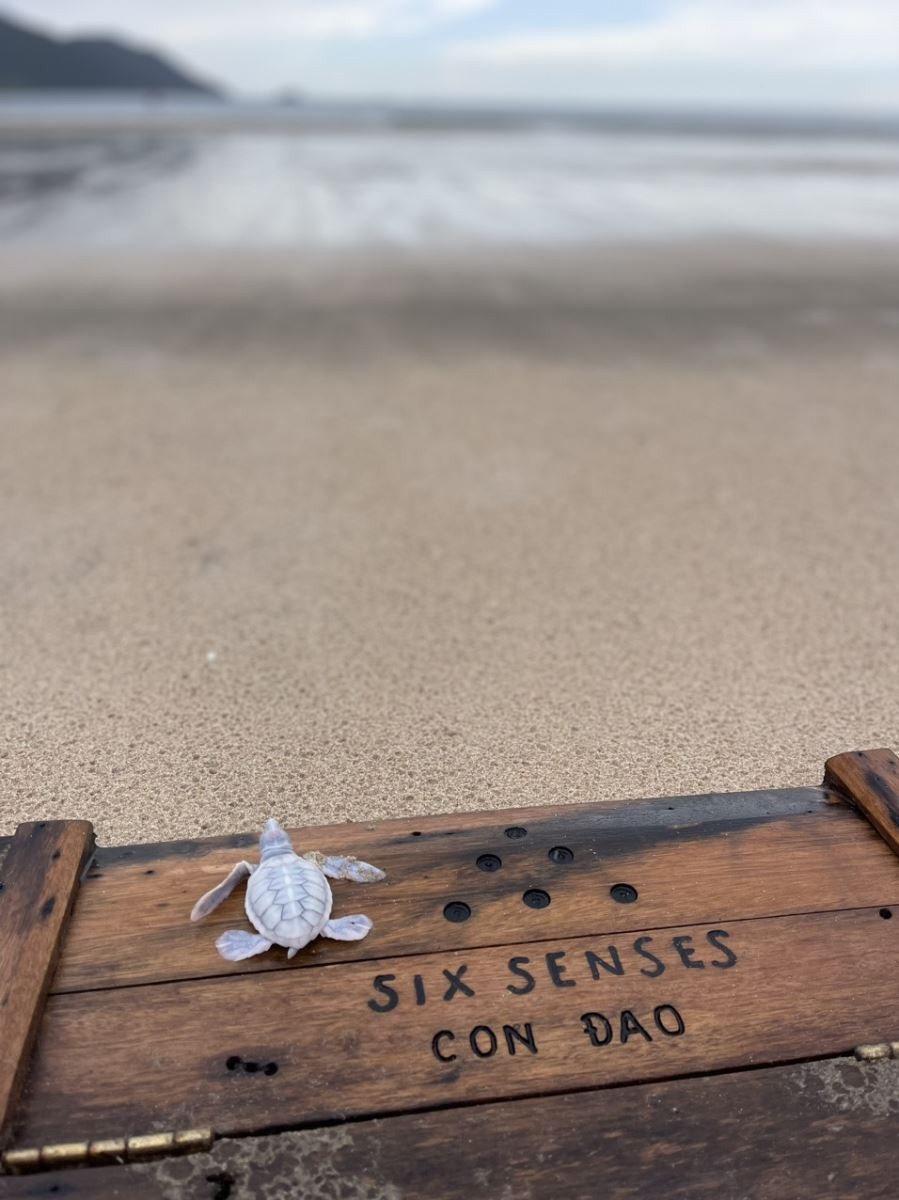 Chú rùa biển Blanche, được các nhà khoa học nhận định là cực kỳ quý hiếm, vừa chào đời tại Trung tâm ấp trứng “Let’s Get Cracking”, trên bãi biển của khu nghỉ dưỡng Six Senses Côn Đảo.