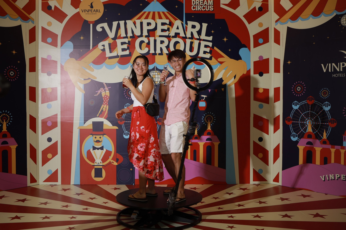 Trước đó, ngay từ chiều tối, tâm điểm của đại tiệc Vinpearl Le Cirque chính là khu vực check-in bằng cánh tay robot Glambot 360, nơi hàng nghìn du khách háo hức tạo hình và khoe clip với thần thái ngút ngàn, sẵn sàng nghênh đón năm mới. Đây là lần đầu tiên công nghệ hiện đại và mới mẻ này xuất hiện trong một đại tiệc countdown hoành tráng của Vinpearl.