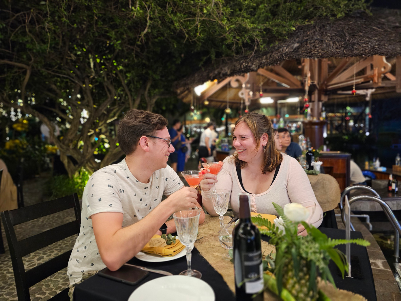 Cặp đôi Charlotte và Noah (du khách Australia) chia sẻ về trải nghiệm đáng nhớ nhất tại Nha Trang: “Đón năm mới trong dạ tiệc The Green Forest Party, chúng tôi thật sự đã có một hành trình kỳ diệu khi được thư thái nhâm nhi cocktail dưới ánh hoàng hôn tuyệt đẹp trên bờ biển , cùng nhau đếm ngược và vỡ oà thích thú trước màn pháo hoa rực rỡ bừng sáng cả hòn đảo”.
