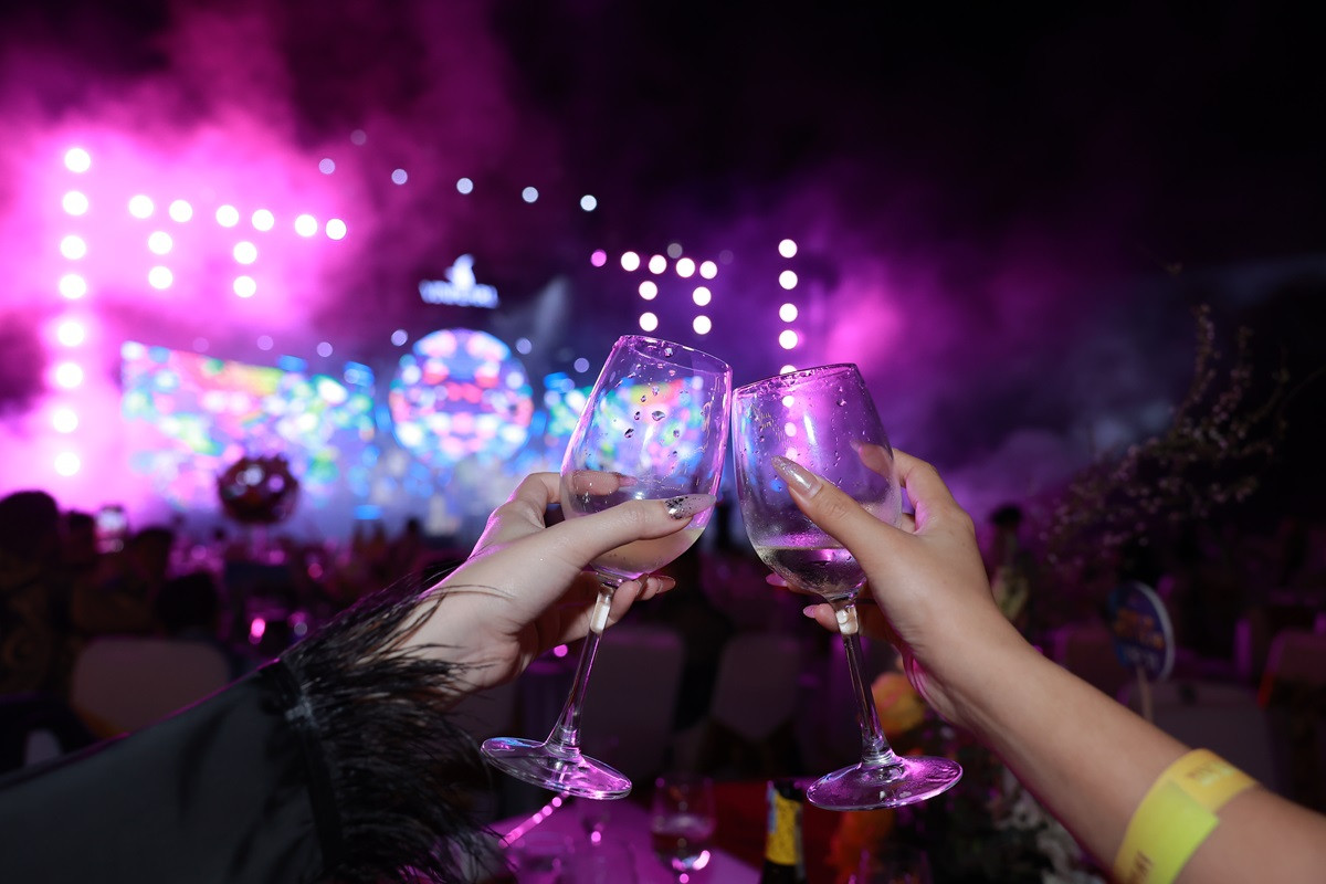 Từ 18 giờ, hàng ngàn du khách nô nức đổ về phía Hồ Tình Yêu - trung tâm Grand World. Sự xuất hiện của “chàng hoàng tử nhạc tình” Hoàng Dũng trên con thuyền Gondola trứ danh đánh dấu màn mở đầu đỉnh cao và ấn tượng cho đại nhạc hội Wake Up Countdown Party. Ngay sau đó là màn “đổ bộ” của các nghệ sĩ gen Z đình đám: Sofia, ”tân binh khủng long” Wren Evans trong những tiết mục được dàn dựng công phu đi cùng hiệu ứng laser futuristic cực đỉnh, mang đến một sân khấu mãn nhãn và bùng nổ cả về âm thanh lẫn ánh sáng. Các “chị đẹp đạp gió rẽ sóng” Trang Pháp và Phương Vy Idol đẩy bầu không khí hội hè thăng hoa đỉnh điểm với loạt ca khúc sôi động I’m a super star, Turn up the fire, Happy Together, On and on… vang lên giữa sân khấu nổi siêu thực, cộng hưởng hiệu ứng pháo, lửa, màn nước và ánh sáng đầy mê hoặc.