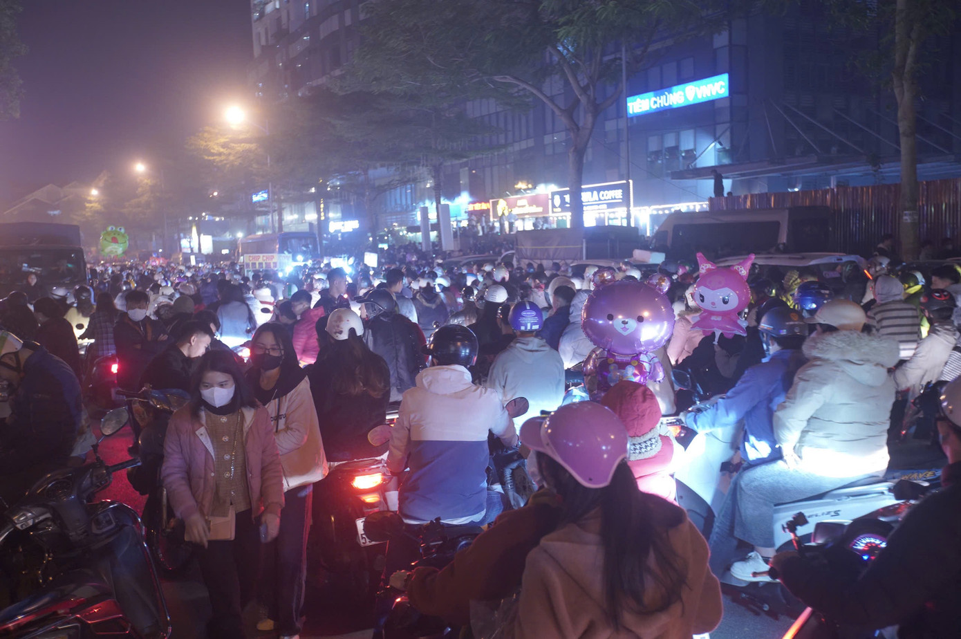 Trong khi đó, tại khu vực hồ Văn Quán (quận Hà Đông, TP Hà Nội) - một trong năm điểm bắn pháo hoá chào mừng năm mới bắt đầu đông đúc, phương tiện ùn tắc nghiêm trọng.