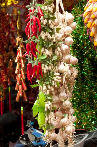 Những bao lì xì, đèn lồng, pháo hoa trang trí cũng được bày bán dọc phố Hàng Mã. Bánh kẹo trên phố Hàng Đường cũng đa dạng hơn mọi năm, nhưng năm nay, không còn nhiều cảnh chen lấn để mua hàng như những năm trước.