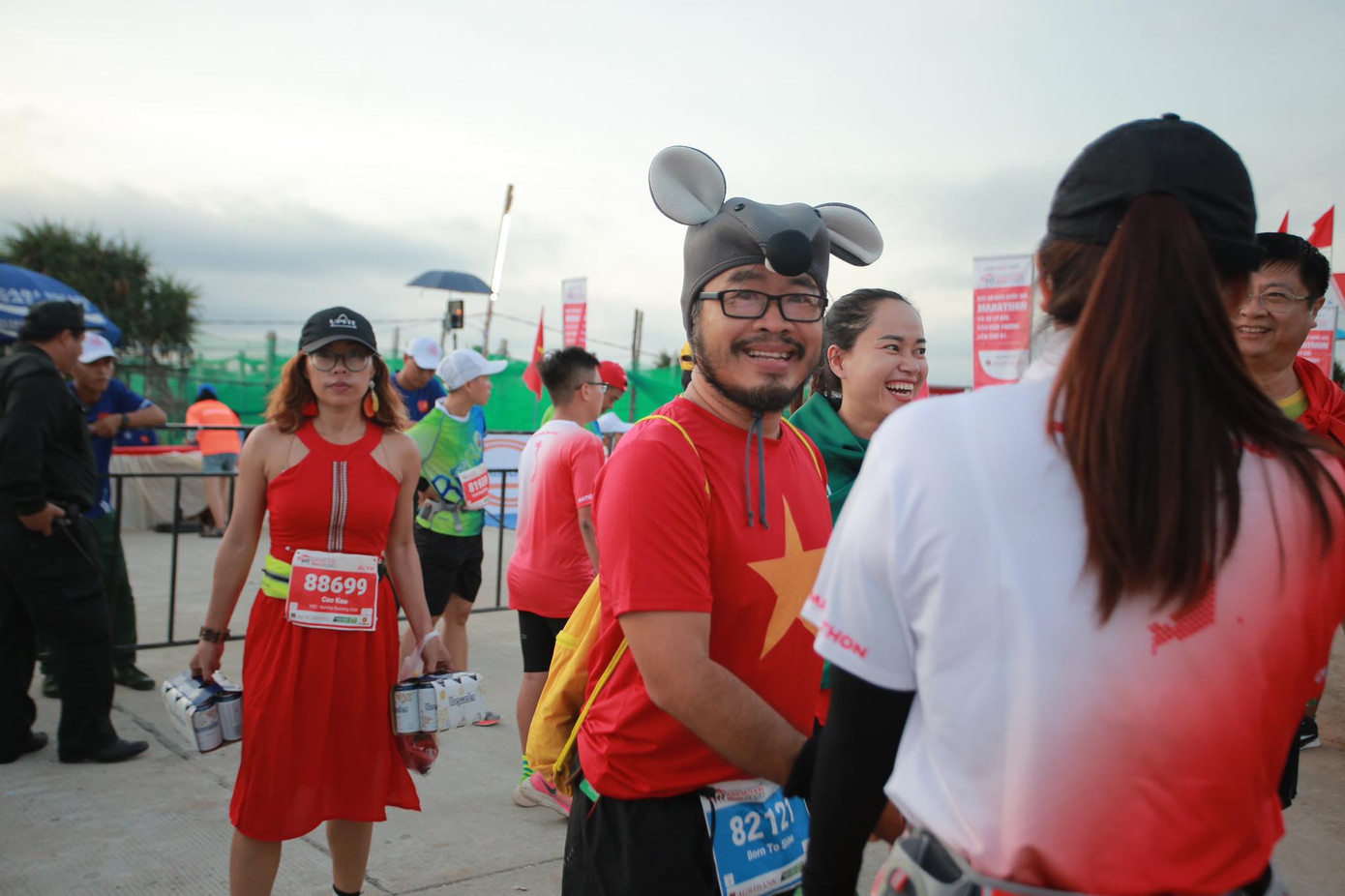 Các VĐV vô cùng phấn khích khi chạy trên cung đường biển phủ rợp 3.000 lá cờ đỏ sao vàng, hình ảnh chưa từng có ở các giải chạy trong nước.