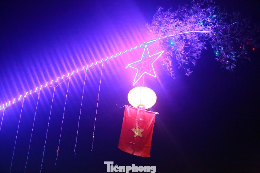 Những cây nêu truyền thống làm từ thân cây tre, cây may cần được trang trí dây led, đèn màu, đèn lồng...thêm phần rực rỡ trong đêm.