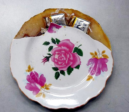 Đĩa Trung Quốc chứa gói chất lạ.