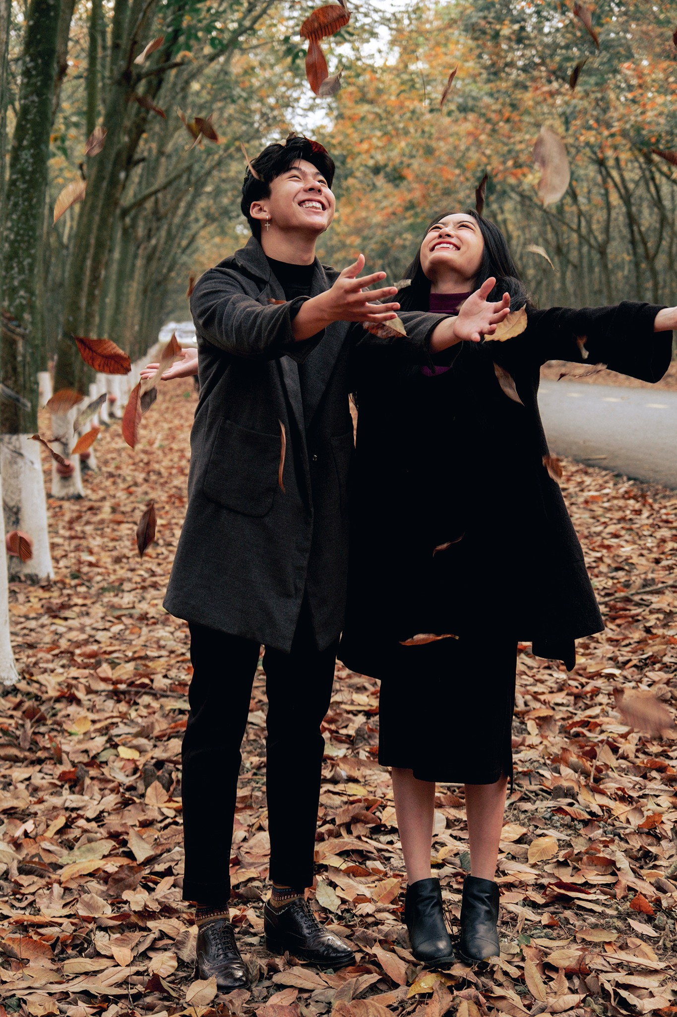 "Tôi đã có 5 năm chụp hình mùa thay lá tại rừng cao su này. Tới mùa, hàng ngàn cây cao su đồng loạt đổi màu tạo nên một bối cảnh rất tình, rất thơ, hợp với những bộ hình lãng mạn. Đây là địa điểm chụp ảnh mà các cặp đôi đặc biệt yêu thích, nhất là khi không có điều kiện di chuyển tới Đà Lạt hay các tỉnh Tây Nguyên", anh Phát cho biết.