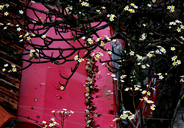 Những gốc sứ trắng, đỏ trăm năm tuổi sần sùi, tán đan quyện vào nhau tỏa ngát hương thơm.