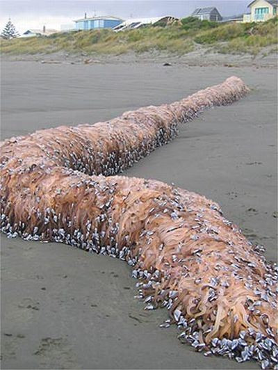 Quan sát từ xa, nhiều người phát hoảng vì cảnh tượng mà họ nhìn thấy. Một sinh vật xù xì, dài hàng mét như một con rắn khổng lồ nằm trên bãi cát hay bị mắc cạn trên rặng đá. Sau mỗi cơn bão lớn, những con quái vật biển như thế này lại bị đánh dạt vào bờ, gây tò mò cho nhiều du khách ở biển Cornwall nước Anh.