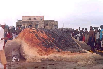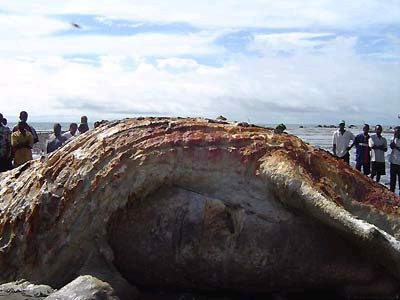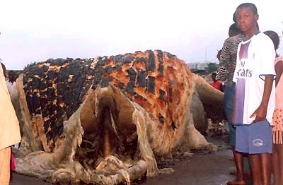 Xác chết quái vật khổng lồ thối rữa trên bờ biển Guinea.