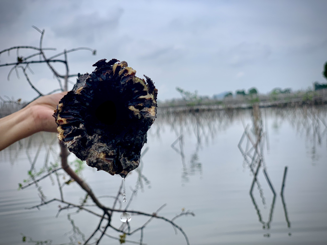Đây được xem là “sinh vật lạ”, đến nay chưa có biện pháp khắc phục. “Rừng đã bàn giao cho xã quản lý, nhưng thời điểm bàn giao cây trồng mới đã chết trên 50% diện tích. Hiện tại tình trạng này chưa được khắc phục, trong khi đó các ngành chuyên môn vẫn chưa có biện pháp ngăn chặn”, ông Anh nói. Trong ảnh được cho là con sôn, loài sinh vật lạ phá hoại bần chua.