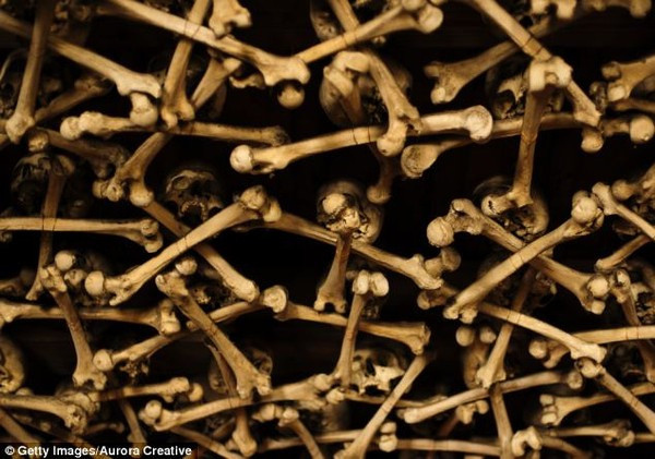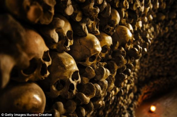 Hộp sọ và xương chân của hơn 3.000 nạn nhân được sắp đặt tỉ mỉ phía trên trần và tường. Trong khi đó, 21.000 xương bộ phận còn lại được giấu kín sau cánh cửa dẫn tới khu hầm mộ của nhà thờ.