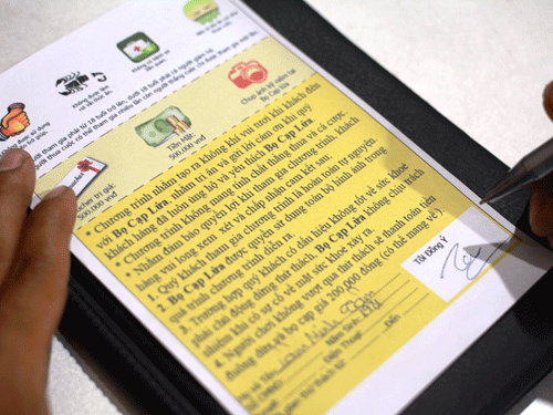 Tối 9/3, anh Phạm Hữu Nhật (quận 12) có mặt tại nhà hàng trên để tham gia cuộc thi. Nhân viên nhà hàng đưa cho anh Nhật bản cam kết trong đó nêu rõ: Trường hợp người dự thi cảm thấy sức khỏe không tốt có thể ngừng thi, mọi sự cố về sức khỏe nhà hàng không chịu trách nhiệm và yêu cầu anh ký cam kết.