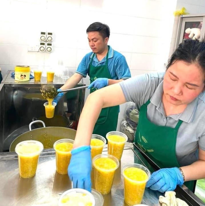 | Các thành viên trong nhóm được phân công, chuẩn bị các suất cháo để phát tặng bệnh nhân. |