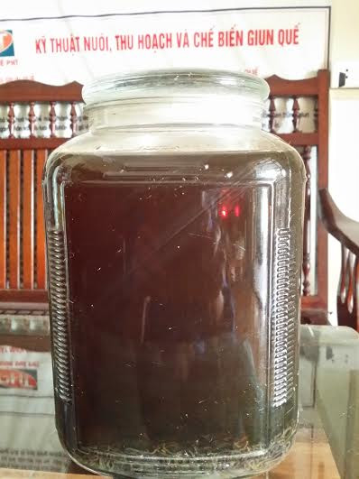 Anh Nam chia sẻ, trên mạng có rất nhiều tài liệu nói về tác dụng củagiun quế, như rượu giun cực tốt cho đàn ông, giúp tăngcường thể lực; ngoài ra còn phòng được rất nhiều bệnh, từ bệnh taibiến, mỡ máu cho đến ung thư... Thế nên, cách đây hơn một tháng, anhđã bỏ cả ngày trời về một trang trại giun quế bên Gia Lâm xem ngườidân nuôi rồi đặt mua 2 kg giun quế về ngâm rượu uống.