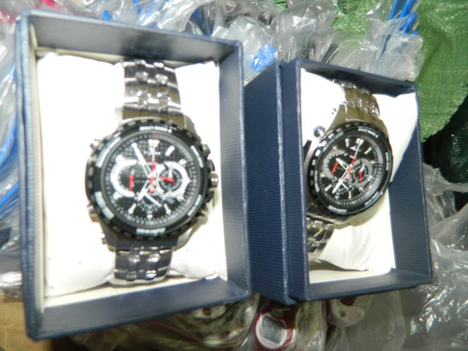 | Số hàng gồm 654 đồng hồ đeo tay, trên 3.000 gói thuốc Zet, rượu Chivas 21 không giấy tờ, nguồn gốc. |