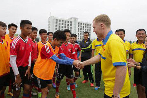 Sau buổi tập, các cầu thủ trẻ PVF nói lời cảm ơn với hai người thầy nổi tiếng. Lần đầu tiên ra sân tại Việt Nam, Paul Scholes ấn tượng trước tinh thần tập luyện hăng say và cách ứng xử lễ phép của các học trò.