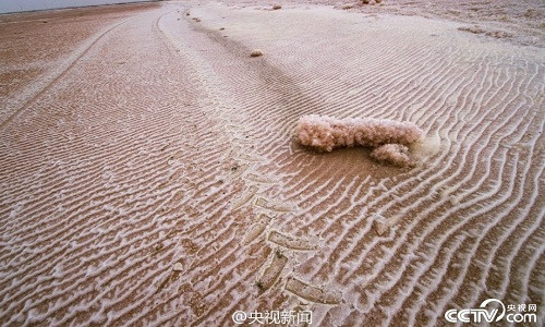 Magie sulphat kết hợp với tinh thể muối trắng khiến vùng hồ chuyển màu. Ảnh:CCTV.