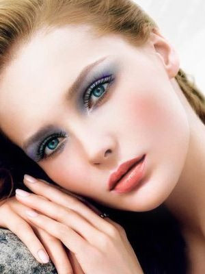 Khi đã dùng màu mắt sáng thì tốt nhất là bạn nên để màu má nude. Dùng màu nude không có nghĩa là bạn để má trần. Bạn dùng màu ánh kim đậm để đánh phần chán, mũi, vùng chân tóc và xương gò má. Như thế trông bạn sẽ thật lộng lẫy. Vào ban ngày hoặc nếu da bị nhờn bạn nên sử dụng màu ánh kim nhạt. Vào buổi tối để trở nên quyến rũ hơn bạn nên dùng thêm màu vàng nhạt để hightlight vùng xương gò má. Nếu bạn vẫn cảm thấy đơn điệu thì có thể thêm một chút hồng nhạt cho đôi gò má. Nó giúp bạn tự nhiên hơn mà không hề “lấn át” đôi mắt.