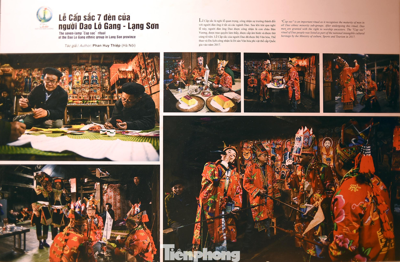 TPO - Tục giã bánh dày của người H'mông ở Sơn La, lễ mừng cơm mới của người Tày ở Yên Bái, lễ cấp sắc 7 đèn của người Dao Lô Giang - Lạng Sơn... và sắc màu trang phục truyền thống của các dân tộc hiện lên sinh động trong nhiều tác phẩm ảnh.