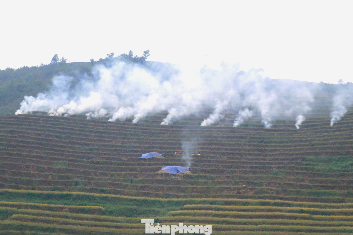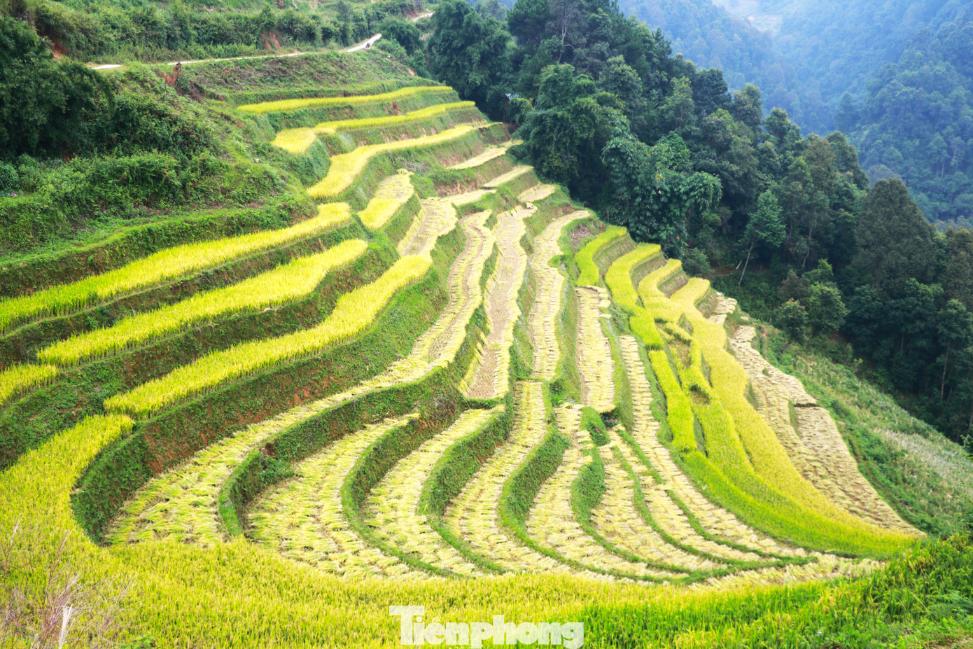 Theo ghi nhận của phóng viên, những ngày giữa tháng 10, trên những thửa ruộng bậc thang Mù Cang Chải, lúa đã chín vàng rộ khắp các cánh đồng, một số địa điểm đã thu hoạch.