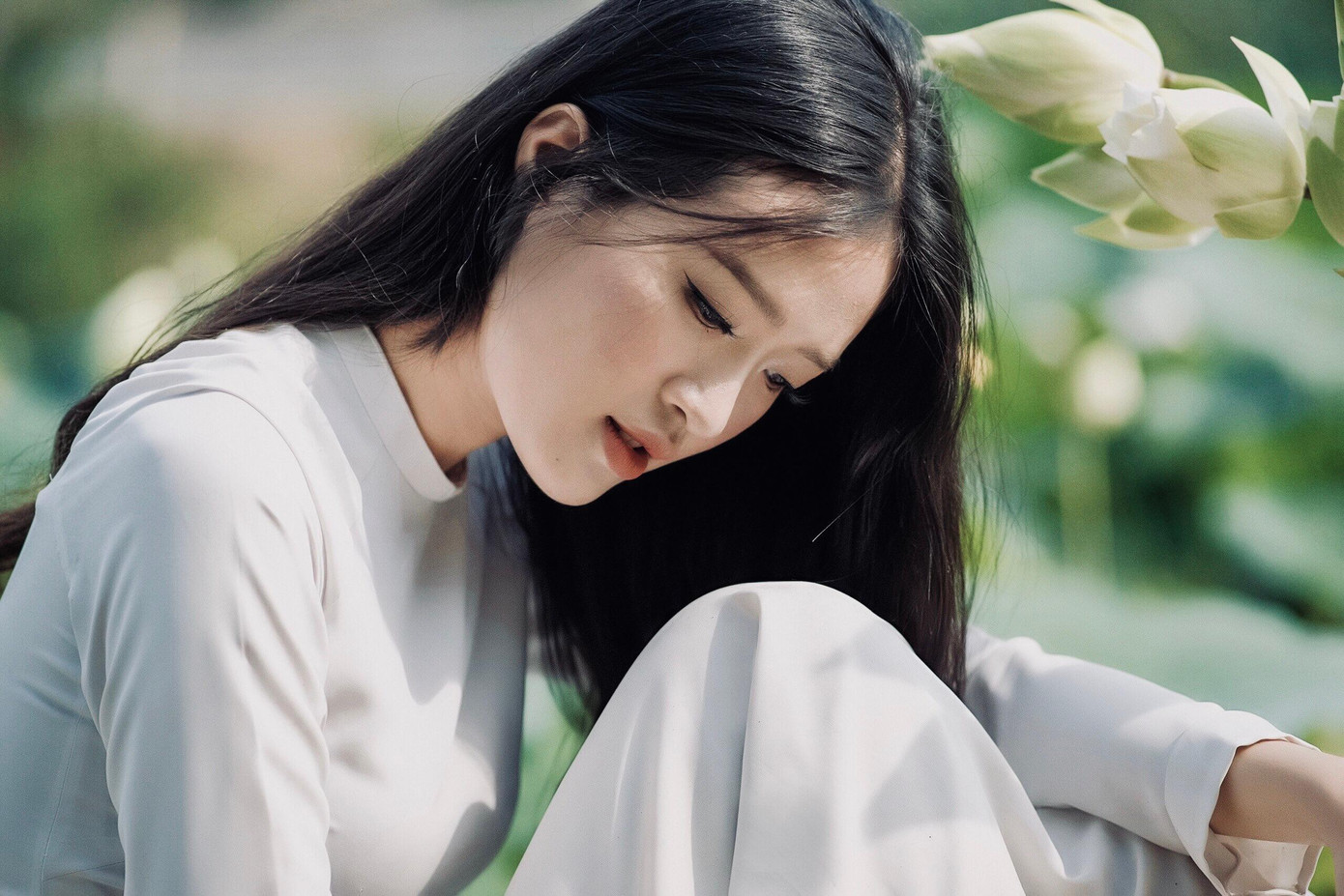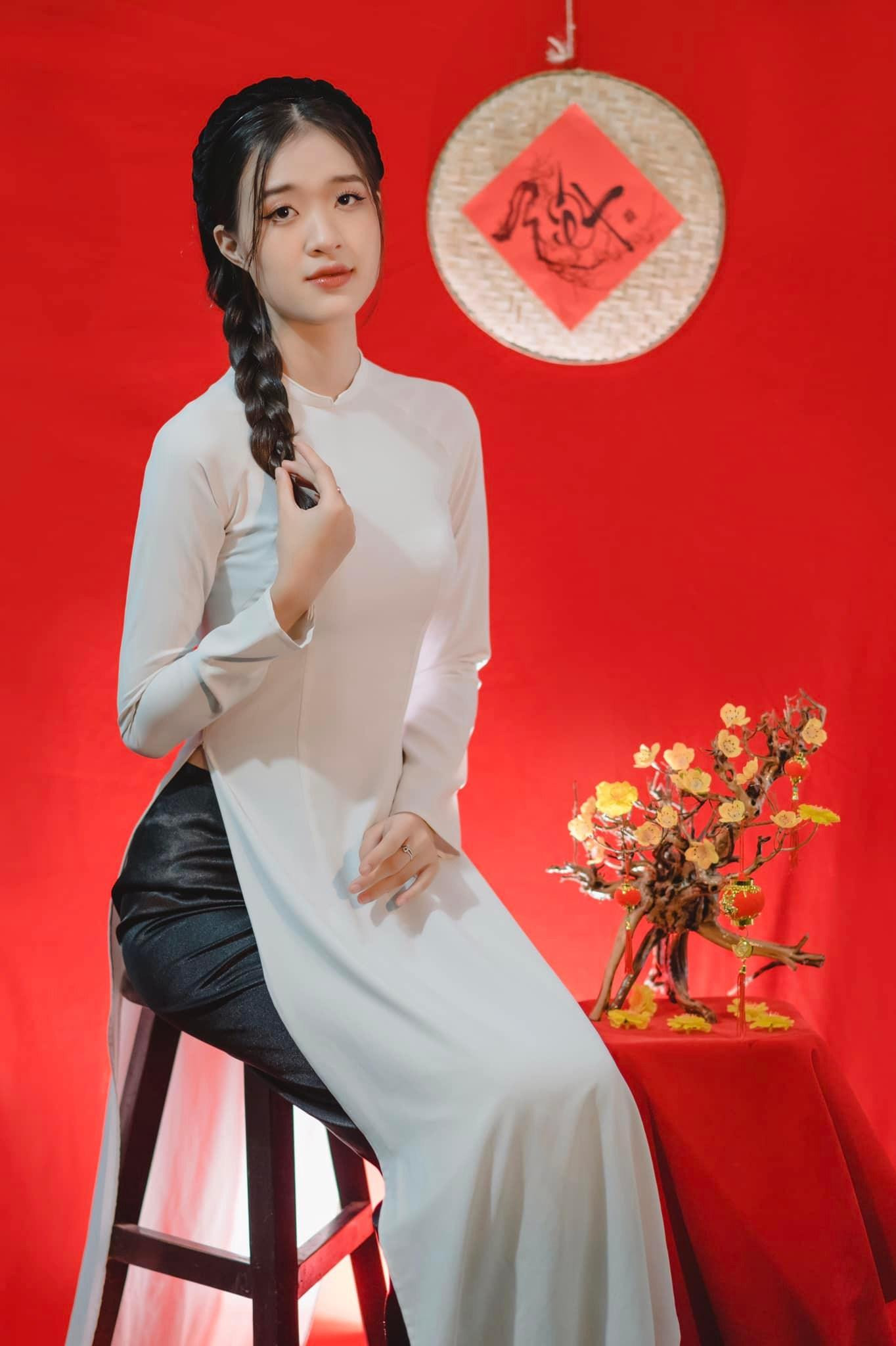 | Yến Nhi duyên dáng trong tà áo dài truyền thống. |