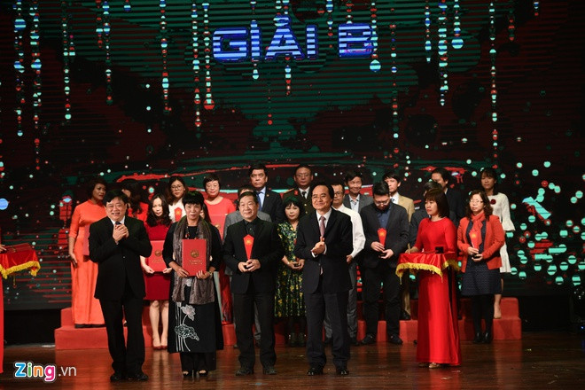 Tới dự lễ trao giải tối 26/12 có ông Võ Văn Thưởng, Ủy viên Bộ Chính trị, Trưởng Ban Tuyên giáo Trung ương, Bộ trưởng Bộ Thông tin và Truyền thông Nguyễn Mạnh Hùng, Bộ trưởng Bộ Giáo dục và Đào tạo Phùng Xuân Nhạ.