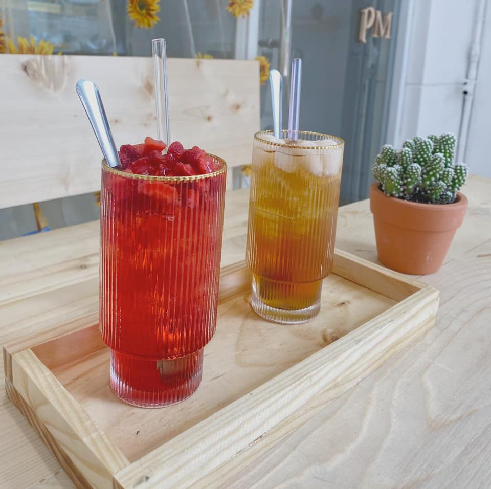 Bạn có thể "xoa dịu" tâm trạng của mình bằng một ly cà phê nhiều sữa sánh mịn. Nếu không có tâm trạng để uống cà phê, hãy gọi cho mình một ly Latte Dalgona, trà vải hay trà dâu tây nhé! Vị trà ở đây ngọt vừa, thanh, thơm dịu. Đói bụng ư? Tiệm cũng có vài món bánh xinh yêu và ngon lành sẵn sàng phục vụ bạn. Món bánh hay được ưu ái gọi nhất ở tiệm là món bánh quế đó, bạn nhớ thử nha!