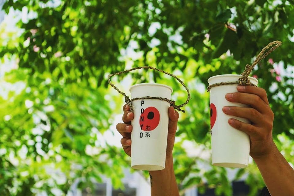 Bạn sẽ lập tức "phải lòng" những chiếc ly giấy được design lạ mắt, quai xách giản dị và ống hút giấy thân thiện với môi trường