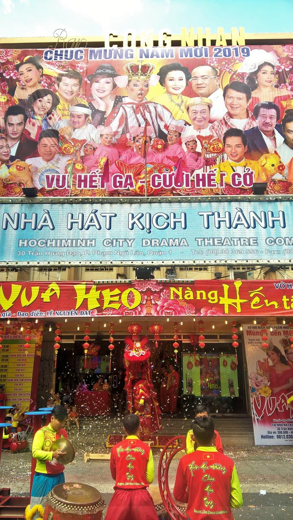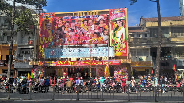 Xem kịch đầu năm là thú vui của người Sài Gòn. Trong ảnh là chuẩn bị diễn khai xuân.