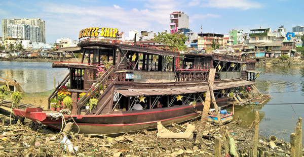 Các quán cà phê đã mở. Trong ảnh là một quán cà phê thuyền có thể di chuyển được bằng động cơ