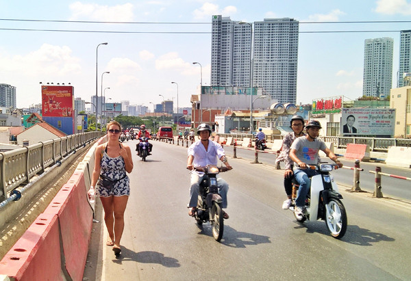 Cây cầu nối Phú Mỹ Hưng với quận 4 thường ngày tắc nghẽn kinh hoàng nhưng sáng nay bỗng rộng thênh thang