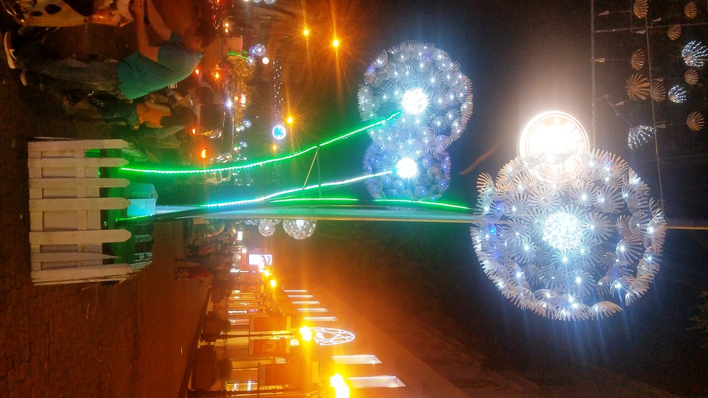 Các tuyến đường trung tâm thành phố được trang hoàng lộng lẫy, rực sáng trong đêm.