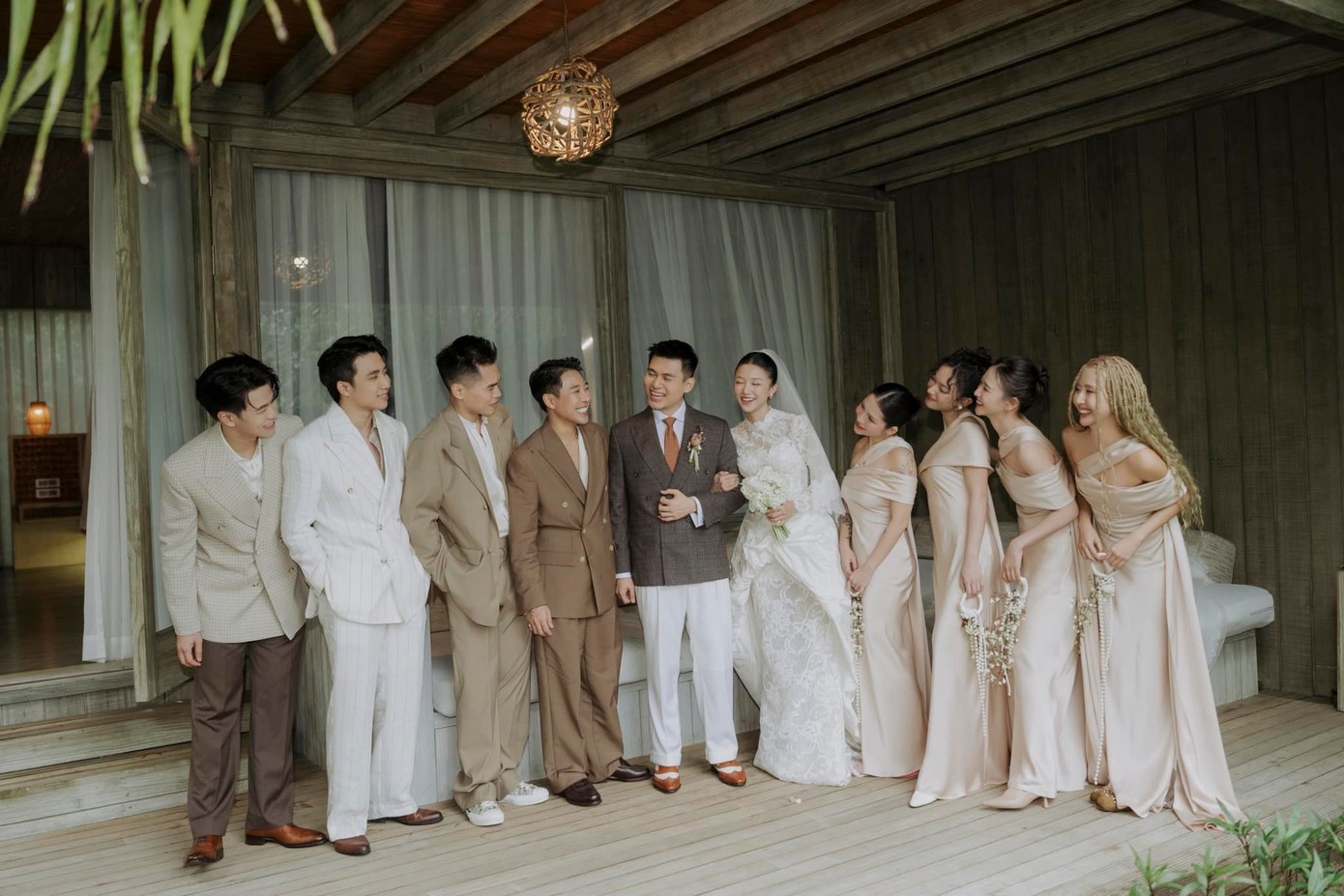 Hôn lễ của Salim và Hải Long được tổ chức riêng tư có sự tham dự của người thân và bạn bè thân thiết. Trong bộ ảnh, khán giả dễ dàng nhận ra dàn phù dâu - phù rể đều là những người bạn thân nhiều năm của cặp đôi như Quỳnh Anh Shyn, Châu Bùi, Trâm Anh, Lâm Thúy Nhàn, Hoàng Ku, Ninh Anh Bùi, Nguyễn Tùng Dương.