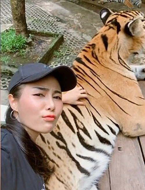 Khách tham quan này mới đến thăm sở thú Tiger Kingdom (Vương quốc Hổ) ở Chiang Mai (Thái Lan) và quyết định chụp selfie với một con hổ.