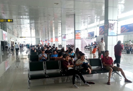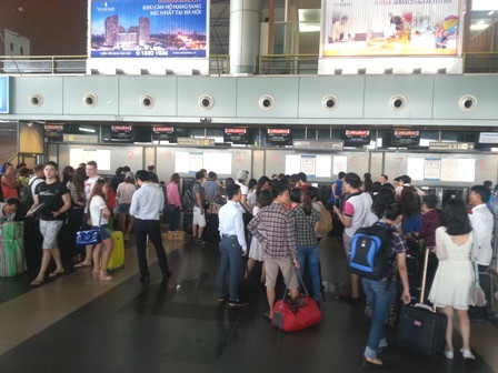 Hành khách xếp hàng chờ làm thủ tục ở sân bay Nội Bài