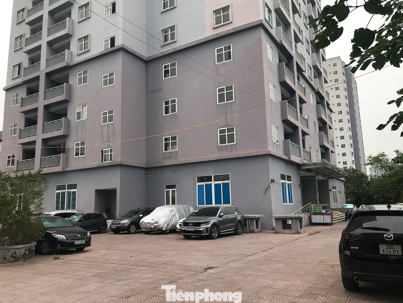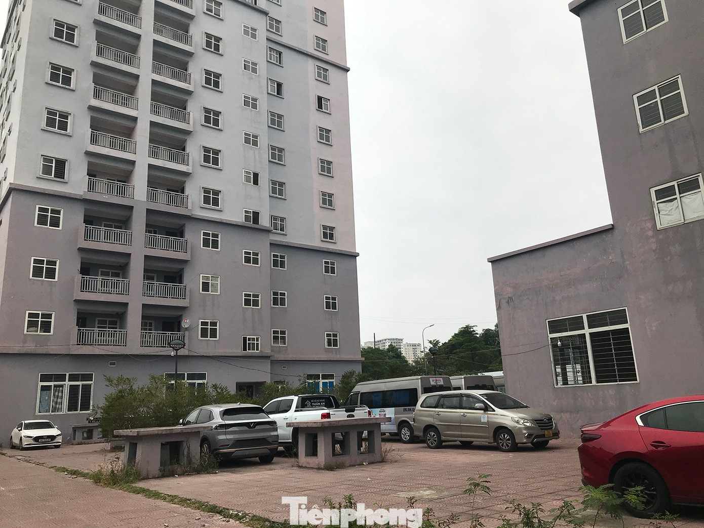 | Có rất nhiều xe ô tô được trông giữ ở sân các toà chung cư tái định cư này. |