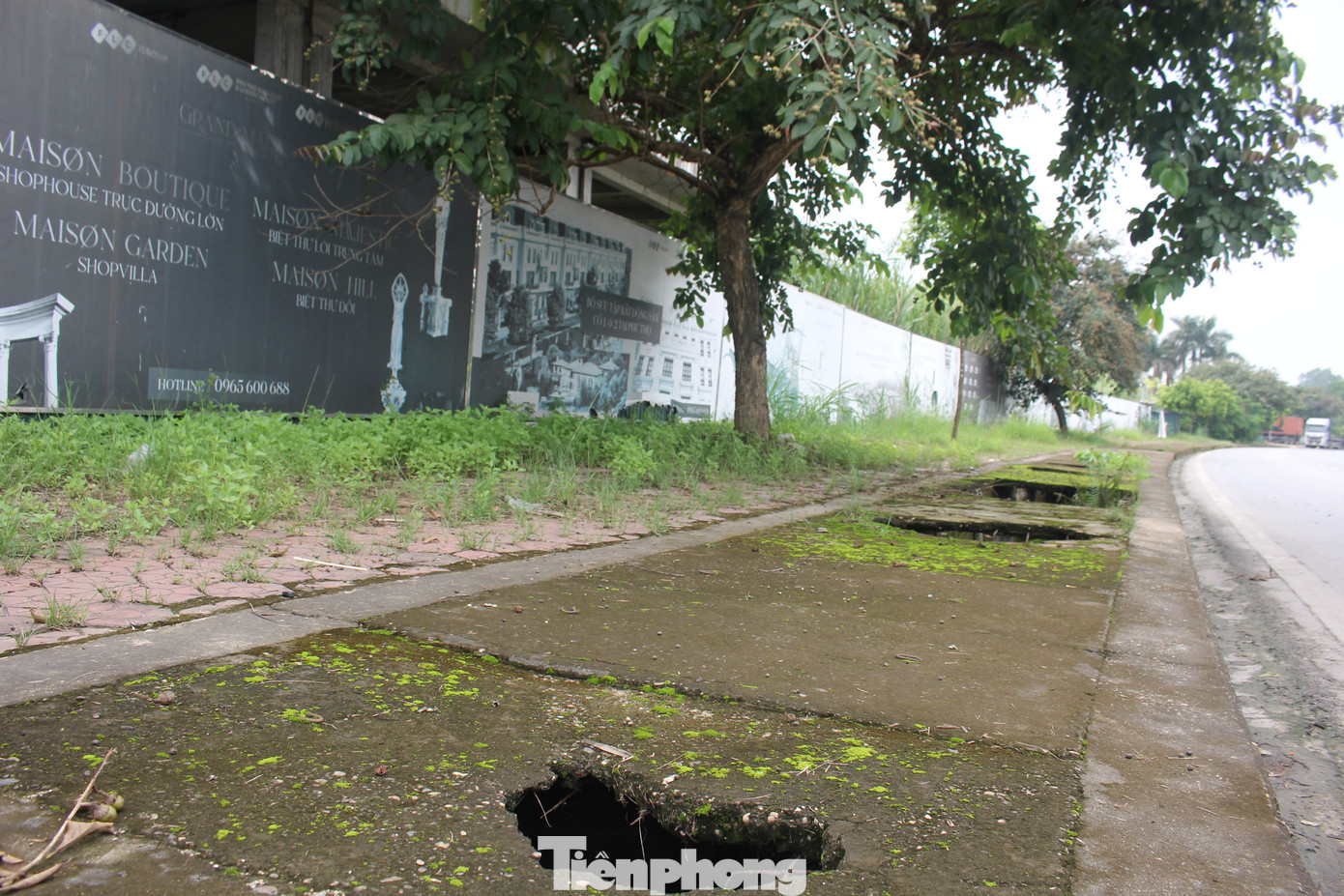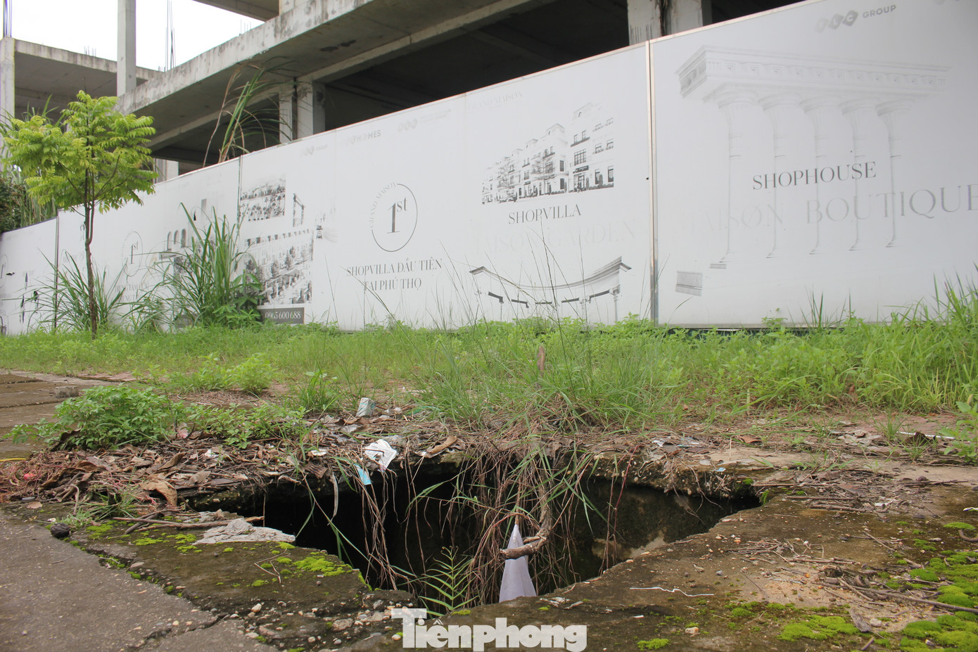 | Cổng chào, pano dự án đã bạc màu và xuống cấp. |
