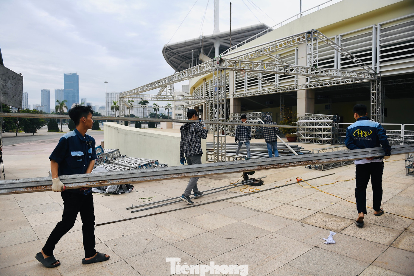 Hiện tại khu vực sân Mỹ Đình bắt đầu lắp đặt các hạng mục như lắp đặt các khung thép, sân khấu, thảm sàn... trong và ngoài sân vận động Mỹ Đình để chuẩn bị cho show biểu diễn tới đây.