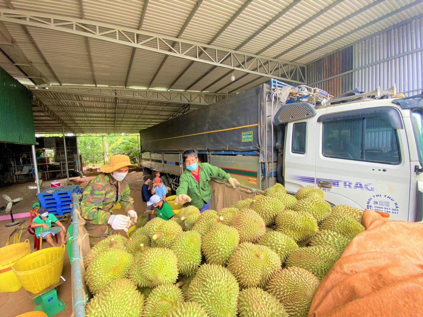 | UBND huyện lập tổ đặc biệt hướng dẫn thương lái thu mua sầu riêng thuận lợi trong mùa dịch |