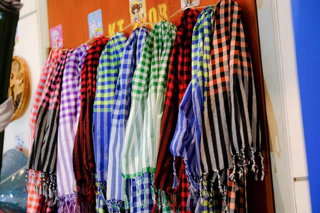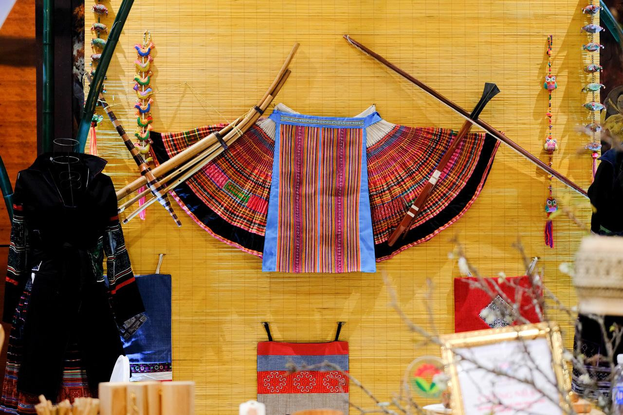Bạn Phan Quỳnh Như - Phó Bí thư Đoàn Khối các cơ quan và doanh nghiệp tỉnh Tuyên Quang chụp ảnh bên các sản phẩm tiêu biểu của vùng miền. Trong đó, có bánh tam giác mạch là đặc sản của miền cao nguyên đá Hà Giang. Sau mỗi mùa hoa, người dân nơi đây thu hoạch hạt tam giác mạch để phơi khô và xay nhỏ thành bột để làm bánh. Trải qua nhiều công đoạn tỉ mỉ, công phu, người làm bánh mới có thể làm nên những chiếc bánh thơm ngon. Ảnh: Châu Linh