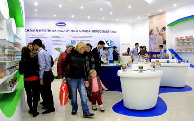 Tham dự Hội chợ hàng Việt Nam chất lượng cao tại Mátxcơva lần này, Vinamilk có gian hàng hơn 100m2 để trưng bày, giới thiệu các dòng sản phẩm dinh dưỡng chất lượng quốc tế, đáp ứng nhu cầu cho mọi đối tượng tiêu dùng với các sản phẩm thơm ngon, bổ dưỡng, tốt cho sức khỏe gắn liền với các nhãn hiệu dẫn đầu thị trường hay được ưa chuộng tại Việt Nam hiện nay như: sữa nước Vinamilk, sữa chua Vinamilk, sữa đặc Ông Thọ và Ngôi Sao Phương Nam, sữa bột Dielac, nước ép trái cây Vfresh, kem Vinamilk, sữa đậu nành Goldsoy…đến với kiều bào và người dân Nga. Tại hội chợ, Vinamilk còn tổ chức cho người tiêu dùng Nga dùng thử các sản phẩm của Vinamilk và đã chiếm được cảm tình của người tiêu dùng Nga đối với các sản phẩm, đặc biệt các loại sữa nước, sữa đậu nành, nước giải khát.
