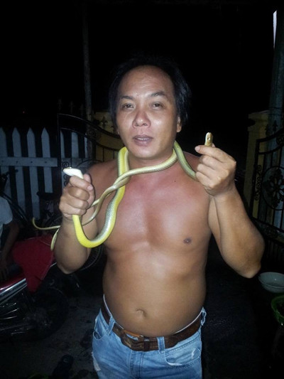 Hiện tại, mỗi tối anh Phúc vẫn thường đi dọc các bờ ruộng để bắt rắn. “Rắn không độc có thể bắt bằng tay không, còn rắn có độc phải dùng móc và đèn pin để rà bắt. Rắn lục đuôi đỏ có hình đầu dẹp, tam giác, xưa giờ nếu có thì thường rất nhỏ, nhưng loài rắn này hiện nay rất to, chỉ đẻ con trong bọc. Nhưng nó lại di chuyển chậm hơn rắn lục bình thường, do đó cũng khá dễ bắt”.