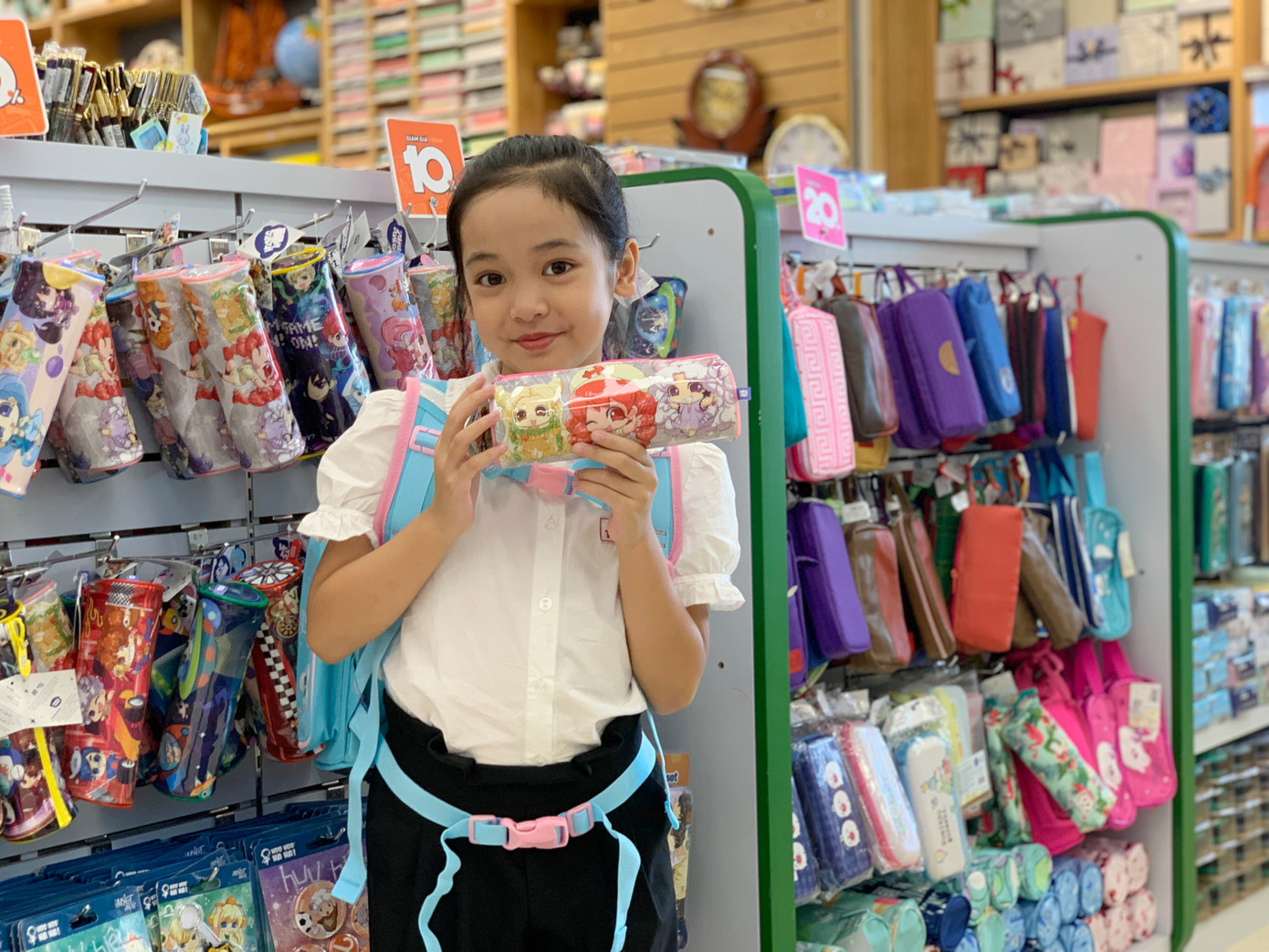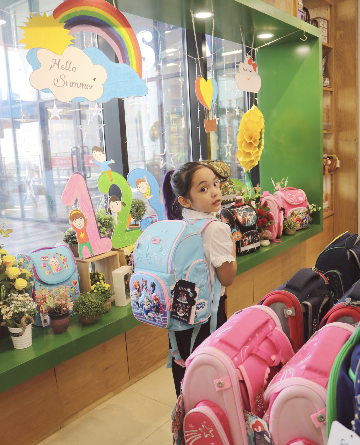 Xuất hiện tại gian hàng trải nghiệm sản phẩm của HooHooHaHa®, Diệp Anh trong bộ đồng phục xinh xắn cùng mẹ lựa chọn balo và đồ dùng học tập để chuẩn bị cho năm học mới sắp đến.