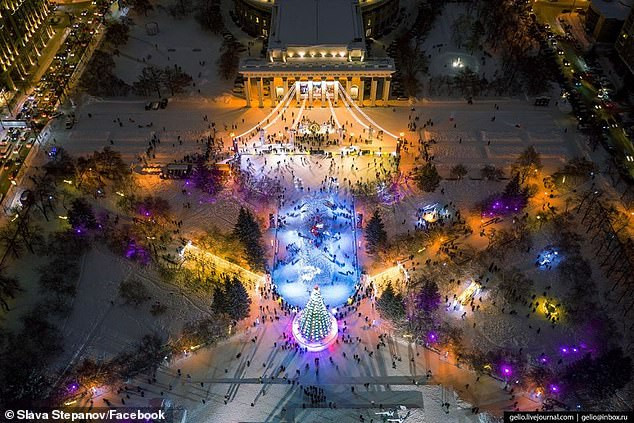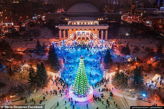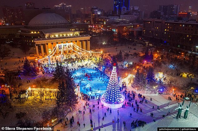 Theo Daily Mail, sân trượt băng nói trên được dựng cạnh cây thông Noel trên quảng trường thành phố Novosibirsk để đón mừng dịp Giáng sinh.