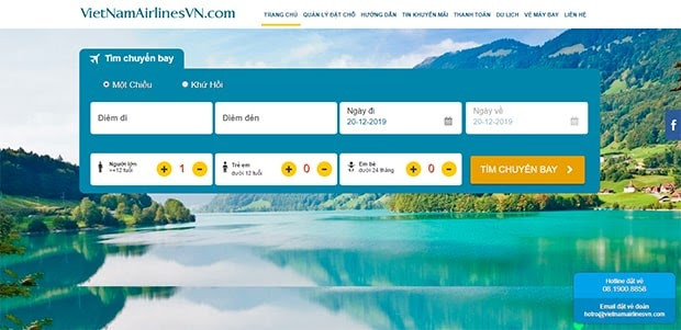 Giao diện website đặt vé được hiển thị trực quan, dễ nhìn là một trong những ưu điểm của vemaybayvietnam.com. Các trường hỏi đáp điểm đến/điểm đi, ngày đi/ngày về và lựa chọn số lượng hành khách hiển thị rõ ràng, bất cứ ai cũng có thể tự tìm kiếm và đặt cho mình một tấm vé máy bay giá rẻ. Ngoài ra, vemaybayvietnam.com còn triển khai rất nhiều dịch vụ như giao vé miễn phí tận nhà, đặt chỗ miễn phí, nhận vé điện tử qua email và thanh toán linh hoạt để khách hàng tiết kiệm tối đa thời gian và công sức.