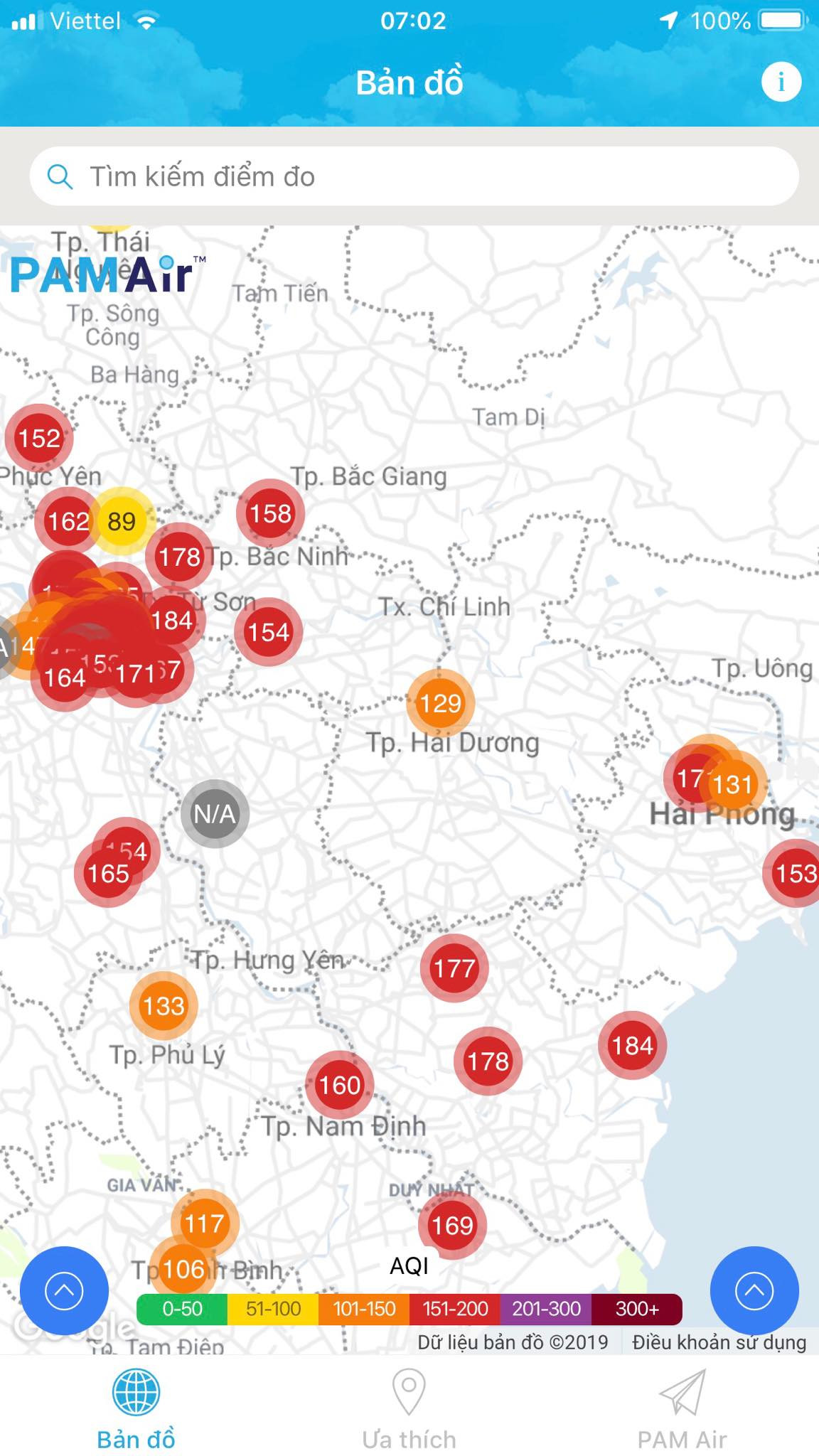 Hệ thống quan trắc PAMAir của Việt Nam cũng ghi nhận ô nhiễm không khí nghiêm trọng ở Hà Nội và các tỉnh đồng bằng Bắc Bộ sáng nay với chỉ số AQI ở hầu khắp các điểm đo lúc 7h sáng nay từ 150-200, ngưỡng ảnh hưởng đến sức khỏe tất cả mọi người. Tối qua, hệ thống PAMAir ghi nhận chất lượng không khí có điểm lên tới 228 như ở Đông Anh (Hà Nội).