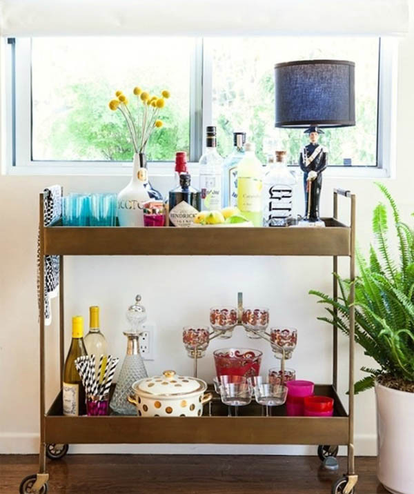 Một mini bar di động cho phép mọi không gian trong nhà bạn đều có thể biến thành bar. Bên cạnh tính lưu động cực cao nhờ những bánh xe, những quầy bar mini này còn được thiết kế rất đẹp mắt và cho phép bạn có nhiều lựa chọn, cũng như thay thế chúng một cách đơn giản khi cần thiết.
