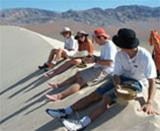 | Một đồ chơi bằng nhựa, giống như một người, không đủ đặc để chìm hoàn toàn vào khối cát lún. |